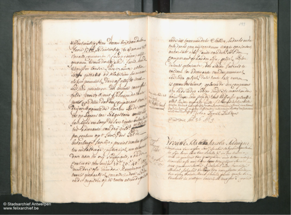 Schepenregister 1746 II, folios 191-193, Pierre Gerardi (Felixarchief) – click to enlarge